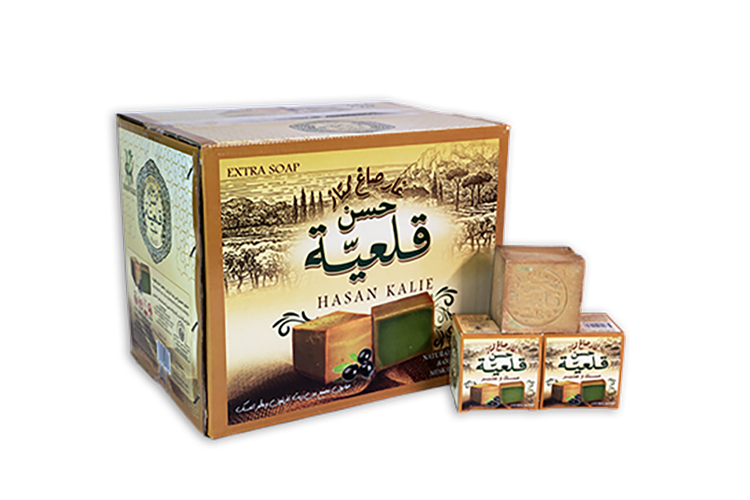 المحتويات: مصنوع من زيت الزيتون وعطر المسك عدد 48 قطعة وزن 200 غرام وزن صافي 9.600 كغ وزن قائم 11.000 كغ
